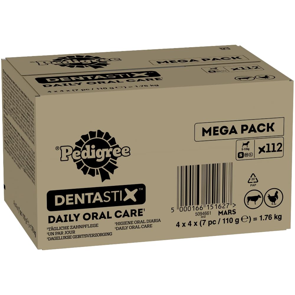 PEDIGREE DENTASTIX - Dental Dog Chews - Adult Small Dogs 5-10 kg - 4 x 28 Sticks - Megapack of Dog Dental Sticks