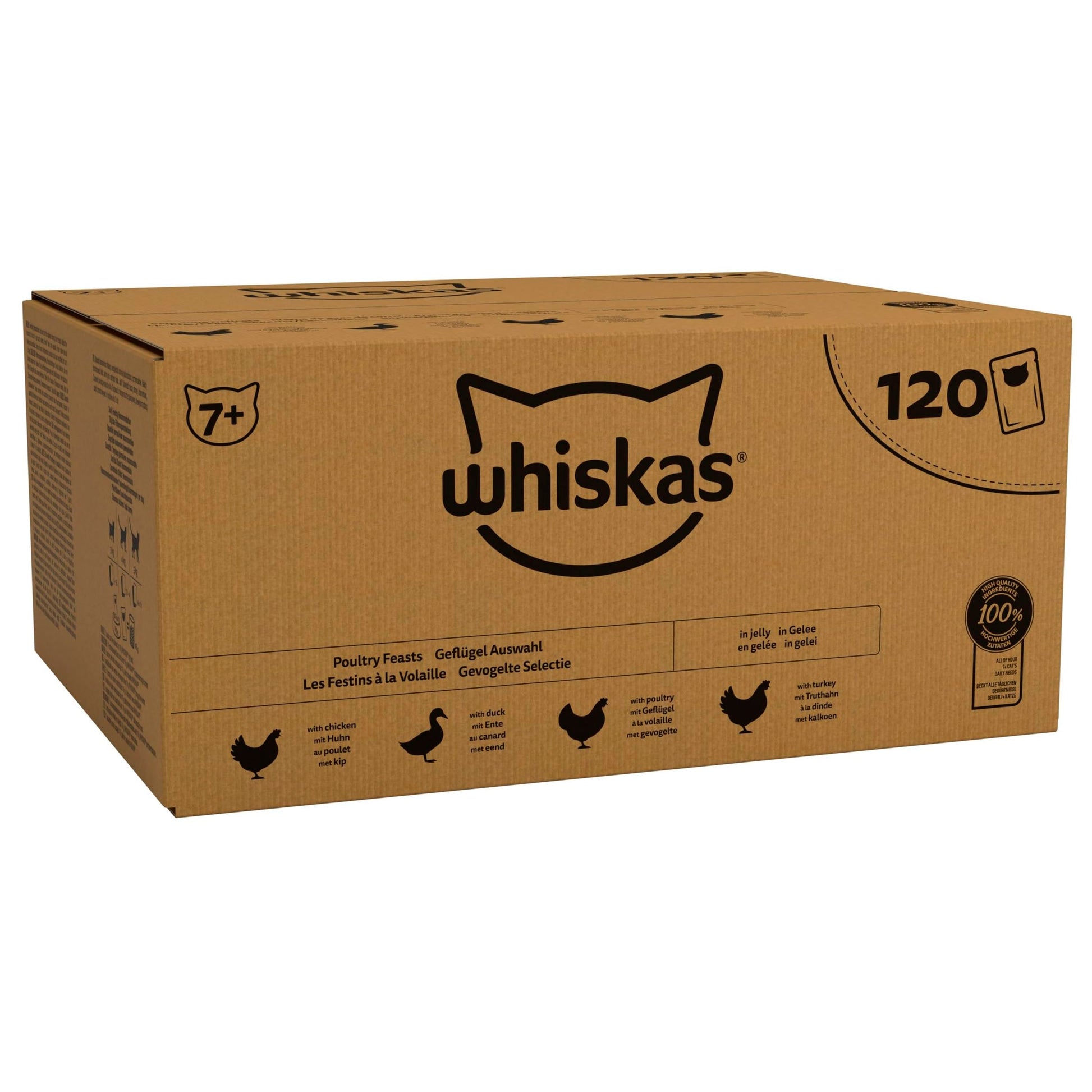 WHISKAS - 7+ Senior Wet Cat Food Pouches - 120 x 85 g - In Jelly - Bulk Cat Food Megapack - 120 Pouches