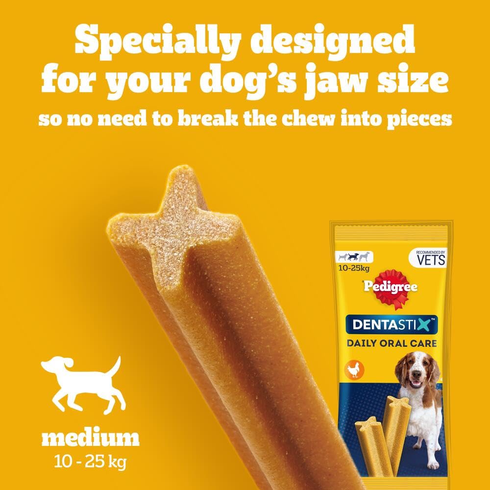 Pedigree DentaStix - Daily Dental chews for medium Dogs (10-25 kg) , 28 Pedigree Dentastix sticks (Pack of 4)